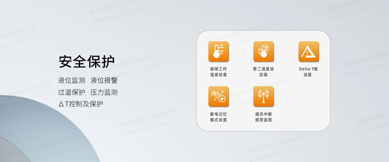 e) 液位監(jiān)測、液位報警、過溫保護、壓力監(jiān)測、ΔT控制及保護等安全保護功能;