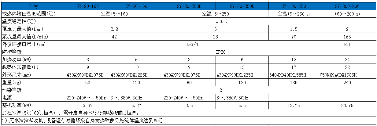 高溫加熱循環(huán)器SY系列技術(shù)參數(shù)